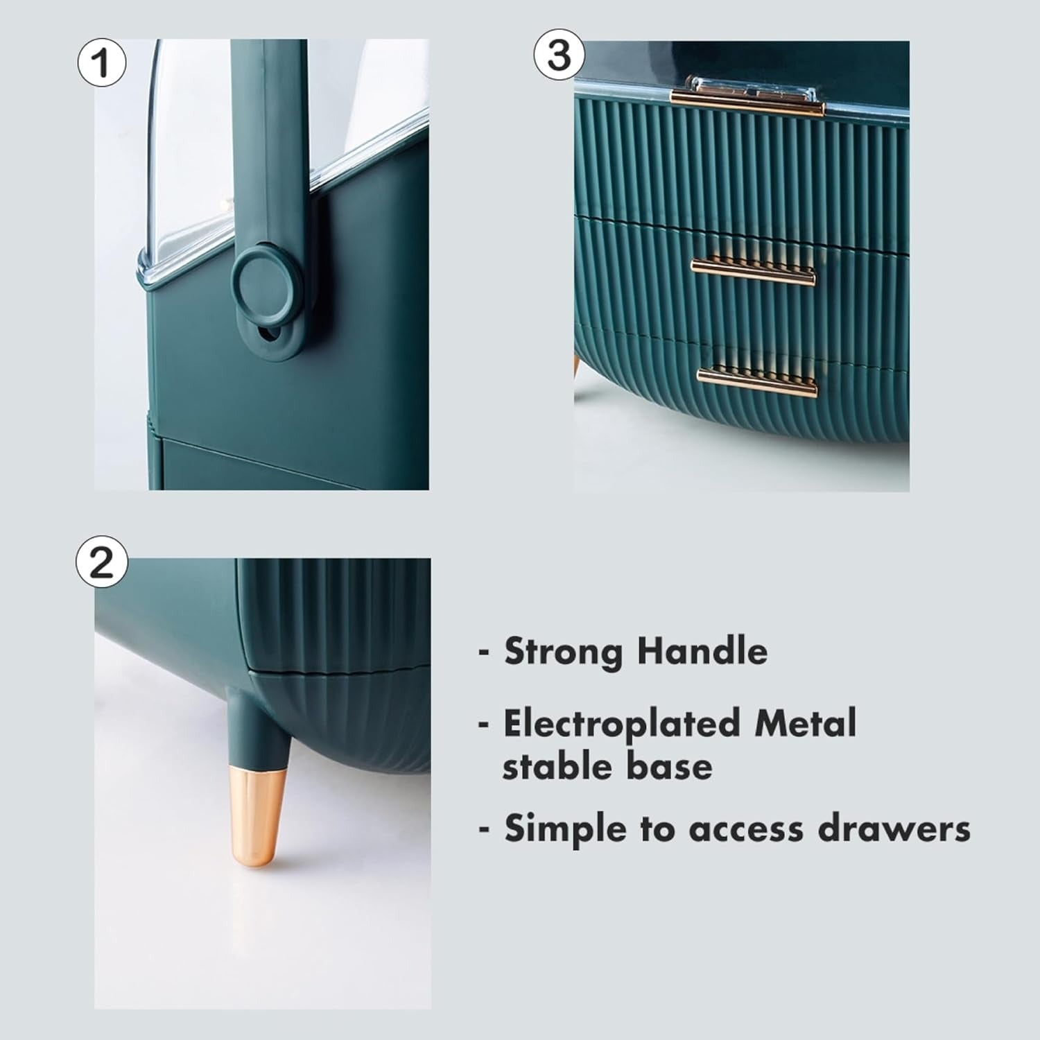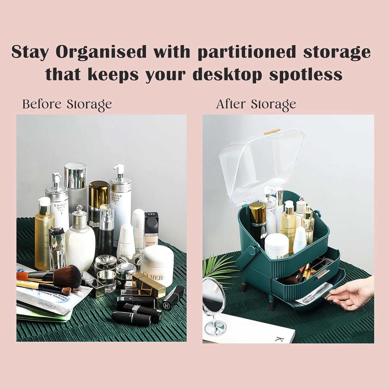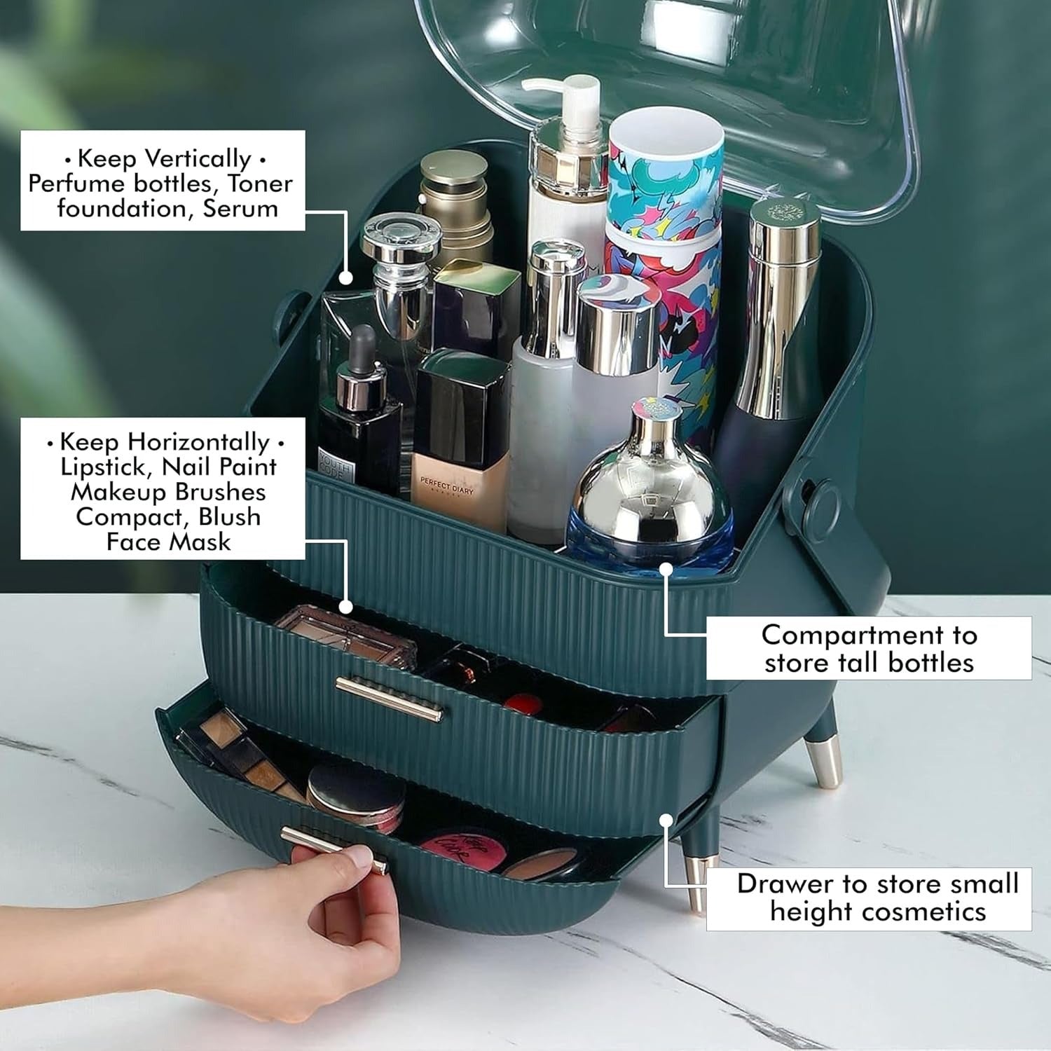 ALOXE Cute Makeup Cosmetics Organizer Box With Drawer Storage|Plastic Storage Organizer Box For Women(Green)