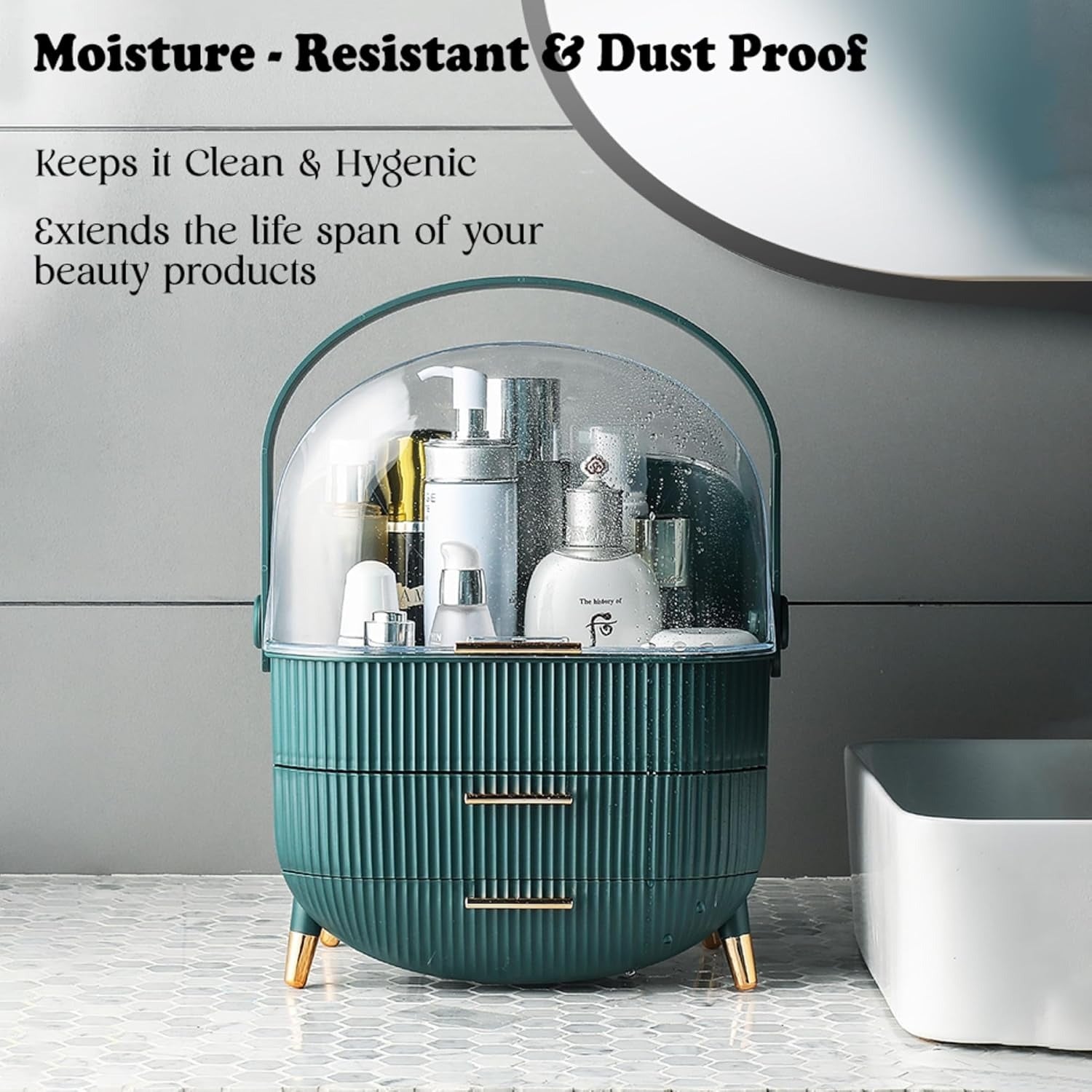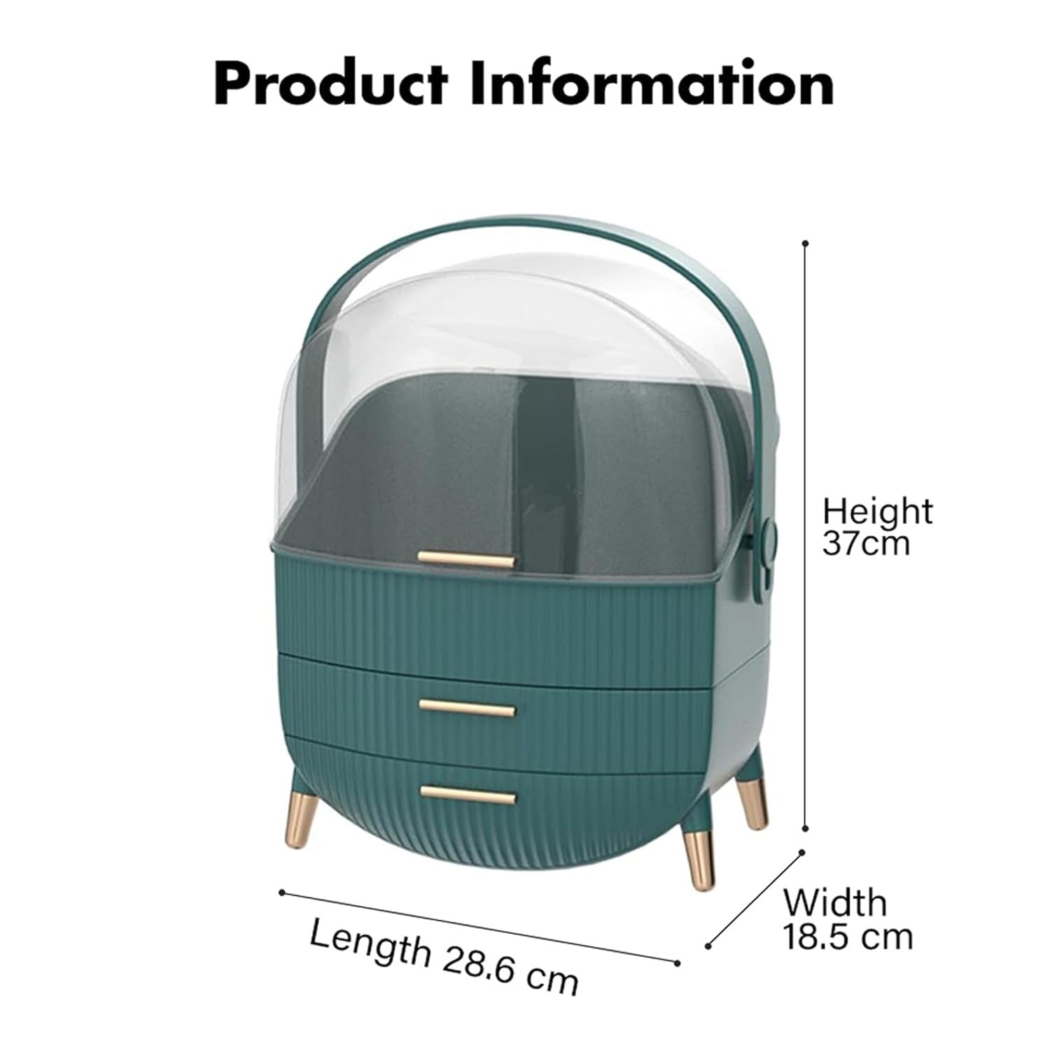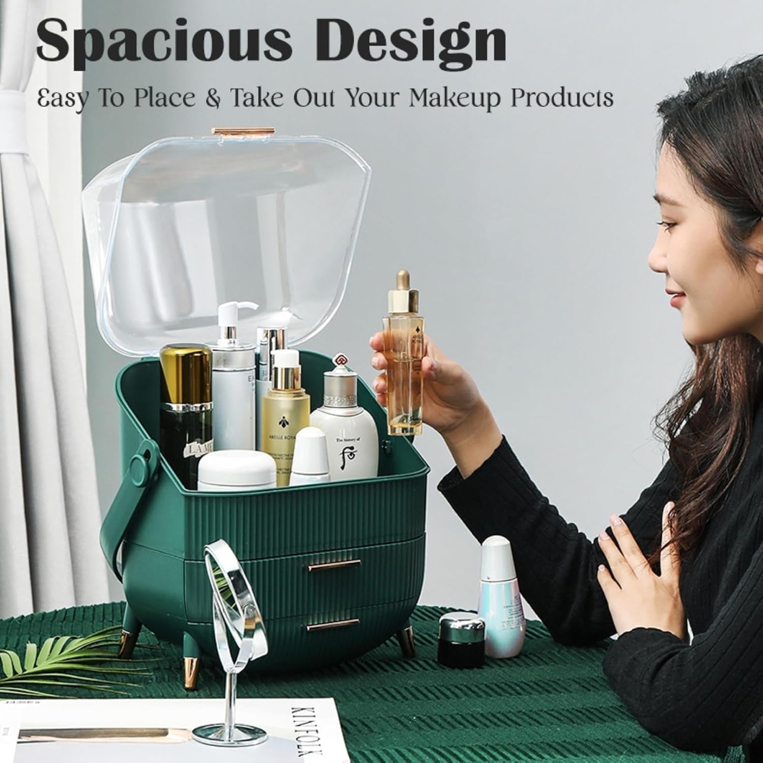 ALOXE Cute Makeup Cosmetics Organizer Box With Drawer Storage|Plastic Storage Organizer Box For Women(Green)